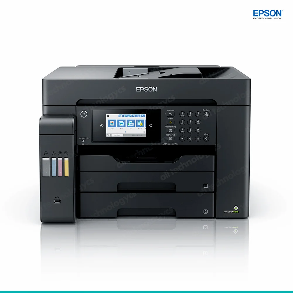 La impresora EcoTank L15150 multifuncional tiene un diseño compacto para impresiones rápidas y a bajo costo con menos intervenciones y tiempo de inactividad. Cuenta con capacidad de hasta 500 hojas en las dos bandejas frontales con botellas de reemplazo de tinta que permiten imprimir hasta 7.500 páginas ISO (negro) y hasta 6.000 páginas ISO (color)¹.